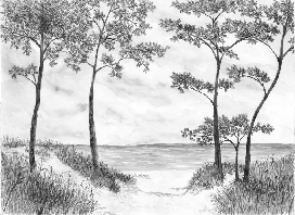 Tapete „Küstenkiefern und Dünen“ – Schwarz-Weiß