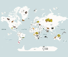 Tapete Weltkarte auf Französisch für Kinder in Eisblau